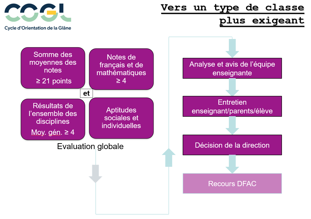 - Une analyse approfondie par la direction d’établissement, en collaboration avec les enseignant-e-s, précède un passage de classe EB-MAO.